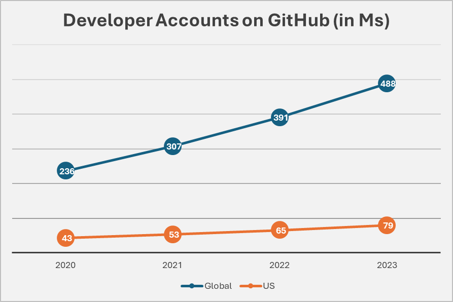 - In 2023, GitHub saw the largest number of first-time open-source contributors.